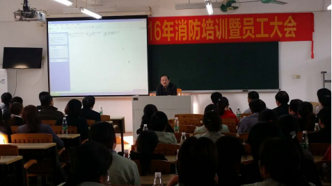 大会下半程对公寓中心全体员工进行消防安全培训。保卫处周知副处长亲临会场,讲述消防安全的重要性,深感消防培训之重要,同时感谢公寓中心及学校各部门对安全工作的支持。