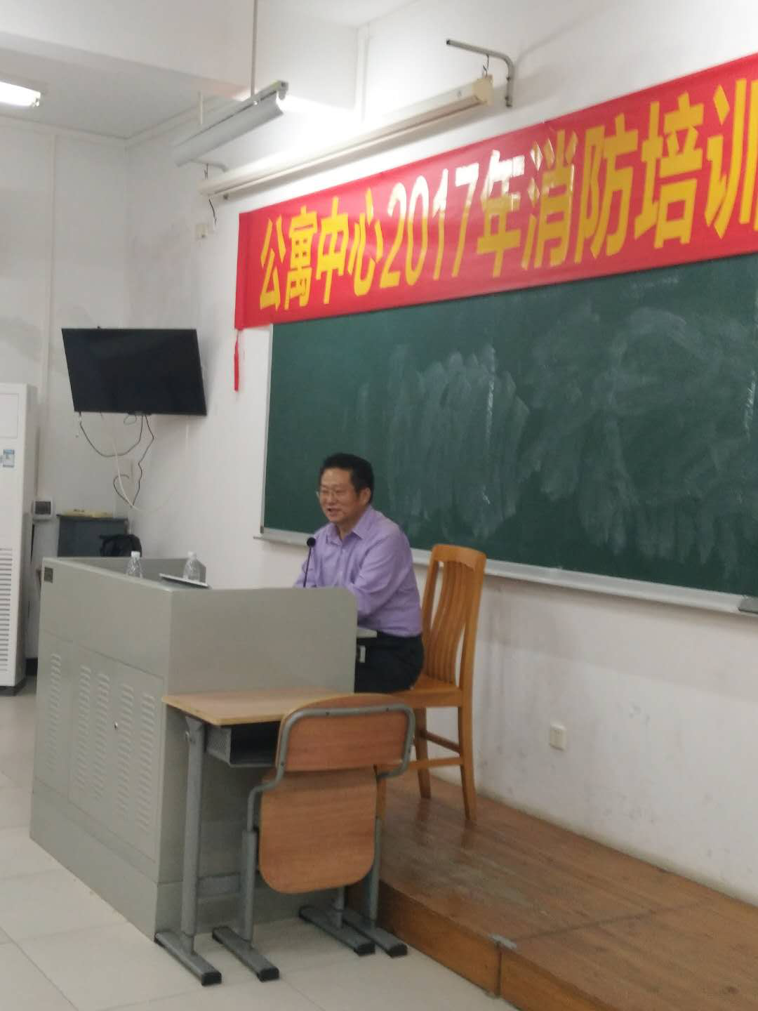 交防科杨枝培科长、杨日光老师结合公寓中心的工作特点和实际情况,讲述消防安全的防患重点及应急处理措施。